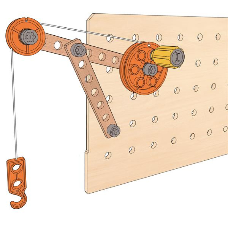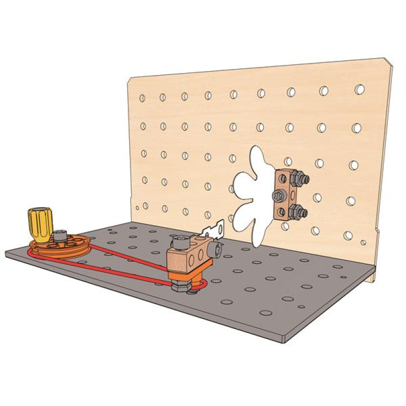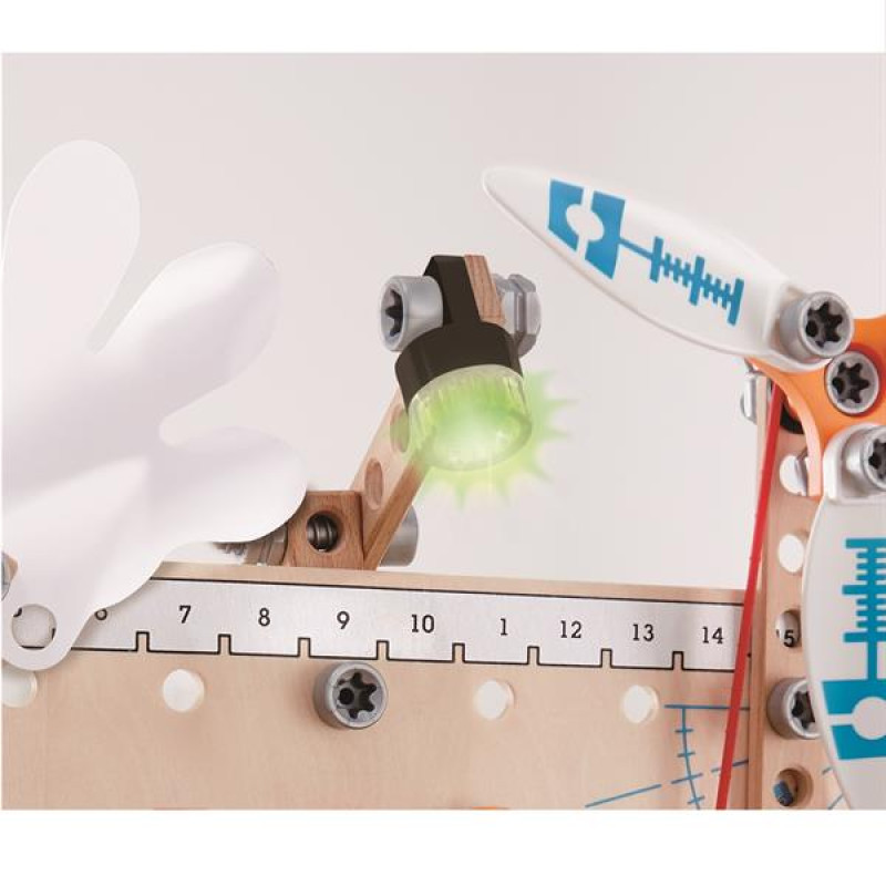 - Зберіть верстак за допомогою інструкції.Використовуйте інструменти і деталі для проведення експериментів.Під час виконання досліджень, ви створите пристрій, який навчить вас науковим принципам (імпульс, потенційна енергія і збереження енергії). Тепер дайте волю своїй уяві.Використовуйте різні компоненти, щоб проводити нові експерименти.На допомогу вашому маленькому вченому Hape випустив додаток 'Ноу-хау' ( 'Know how' App) з докладними інструкціями.