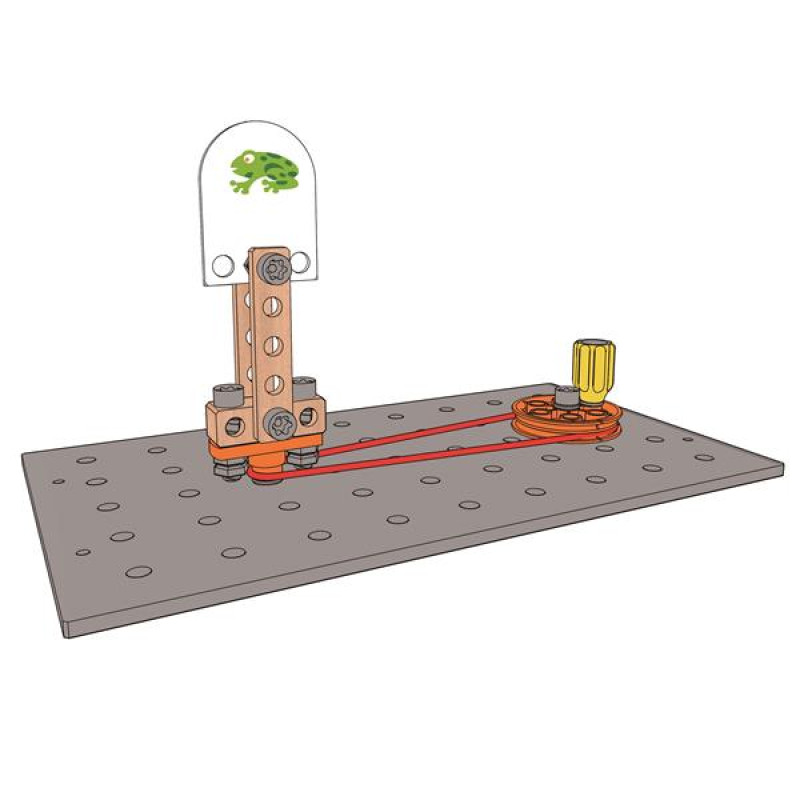 Дізнайтеся більше про науку з цим верстаком для юних винахідників! У ньому є все, що потрібно дітям у віці від 4 років для проведення більш 15 експериментів і демонстрації основних наукових принципів. У наборі 79 предметів. З деталей набору дитина зможе зібрати копач, зоотроп, гравітаційний транспортний засіб, вітряк, лебідку з 'літаючою' жабою і інші незвичайні механізми. Для гри необхідна батарейка CR2032 (не входить в комплект).Як грати: