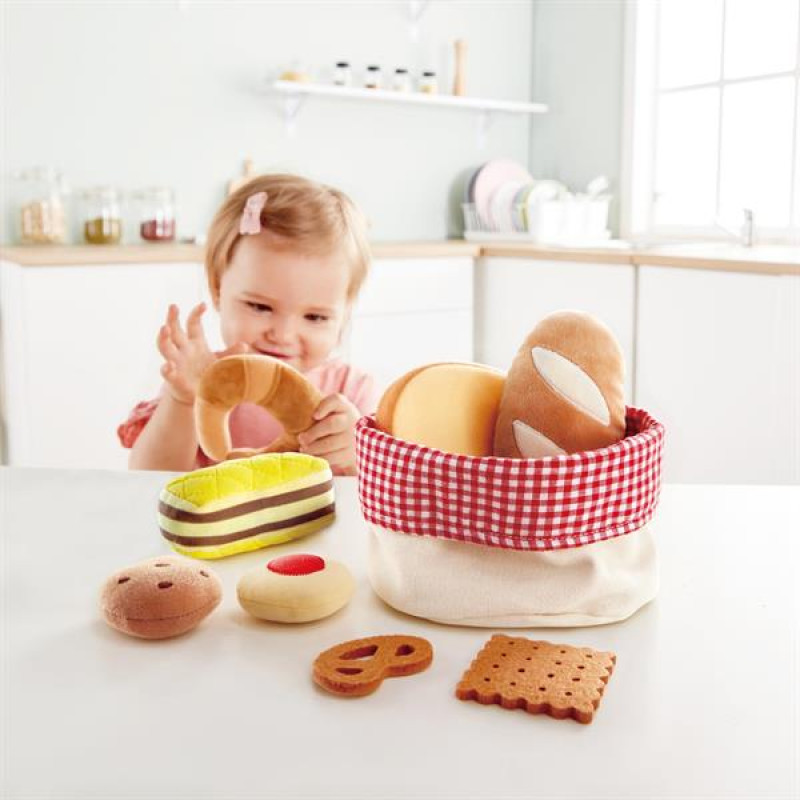 Ігровий набір Hape Кошик із випічкою сприяє здоровому харчуванню та творчим рольовим іграм дітей 18 місяців і більше.Подавайте сніданок, обід або чай із цією м'якою повстяною випічкою! Кошик, наповнений тостом, багетом, круасаном, шоколадним печивом, содовим печивом, печивом із джемом, масляним печивом у формі серця та одним шматочком листкового пирога. Маля навчиться розрізняти різні види випічки.Ця іграшка з фетру не лише розважає дитину, а й розвиває фантазію та тактильні відчуття.Кошик із випічкою виготовлений із повсті та тканини, що робить його безпечним і цікавим для малюків. Маленькому пекарю буде весело грати з м'якою випічкою.Уявіть, що робите покупки з цим кошиком, а коли час гри закінчиться, запропонуйте дитині покласти все назад у кошик, щоб привчитися до порядку.Ігровий набір Hape Кошик із випічкою для рольової гри чудово підходить для тактильного дослідження, розвитку дрібної моторики, моторно-зорової координації, а також для вправ на сортування.