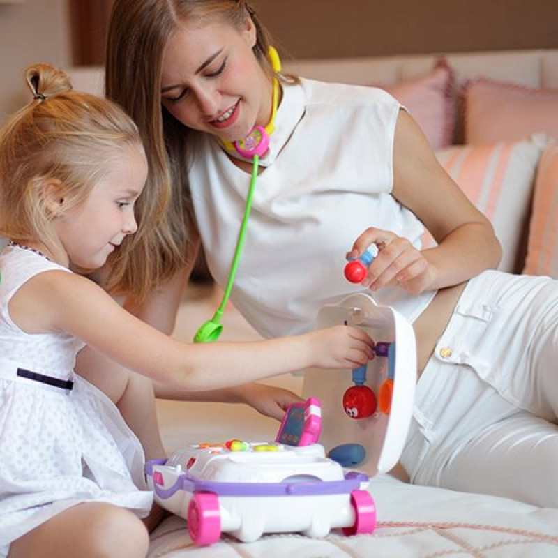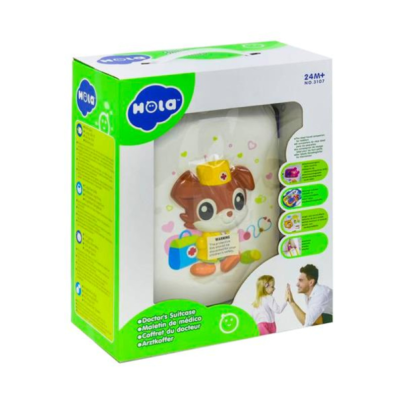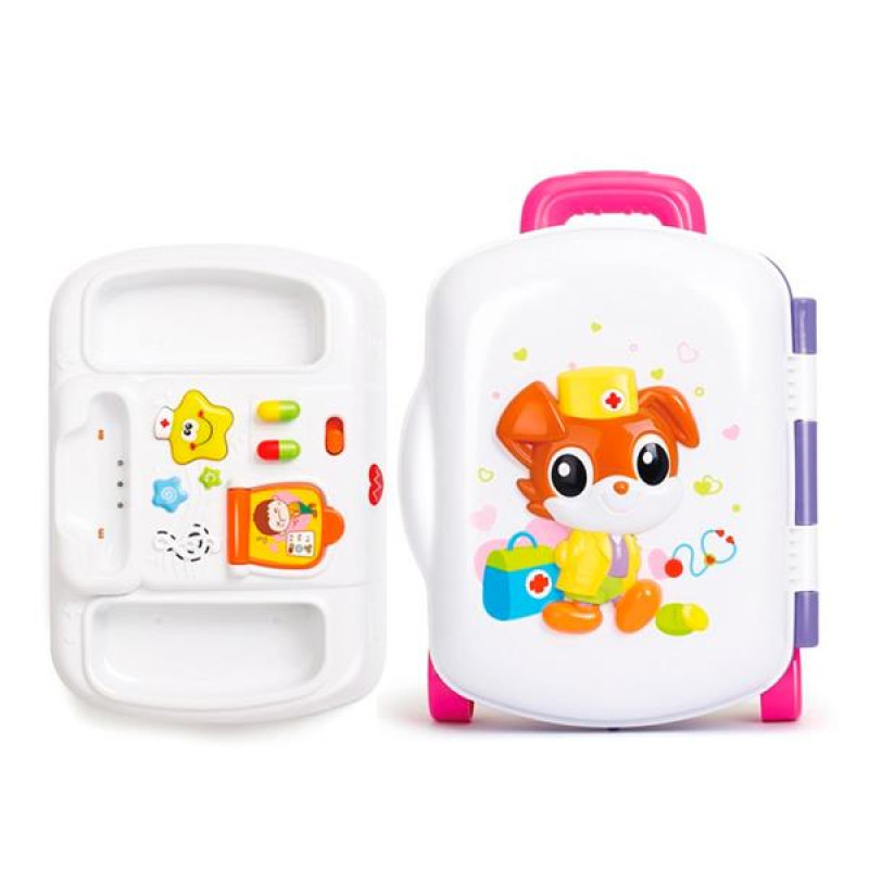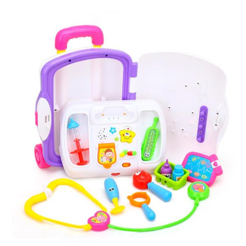 Багато дітей грають в доктора. Рольові ігри допомагають дитині дізнатися різні професії і в грі спробувати себе в тій чи іншій ролі. Коли дитина грає в «Лікарню» батьки можуть пояснити йому для чого потрібні медичні інструменти, через гру дитина може подолати свій страх перед походом до лікаря. Гра в доктора допоможе розвинути в дитині співчуття і доброту. Набір для гри представляє собою зручний чемоданчик на колесах з висувною ручкою. У ньому юний лікар знайде все необхідне для надання допомоги хворим: стетоскоп, шприц, термометр, мікстури, ложечку для мікстур, прилад для електрокардіограми (з підсвічуванням, медичні карти (з звуковими ефектами), пігулки, краплі. Юний доктор зможе вилікувати всіх своїх хворих . Валіза виготовлена з високоякісної пластмаси.