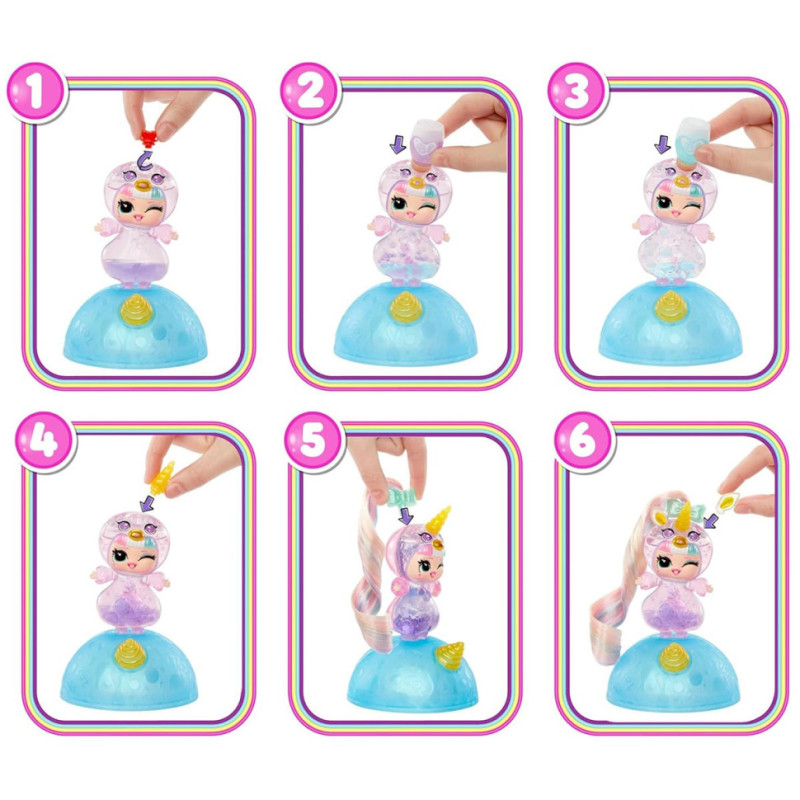 Створіть свою особливу лялечку! У наборі є 2 різнокольорові суміші, які можна влити в ляльку-єдинорога та створити відчуття лавової лампи, коли різнокольорові крапельки ковзають одна повз одну всередині.