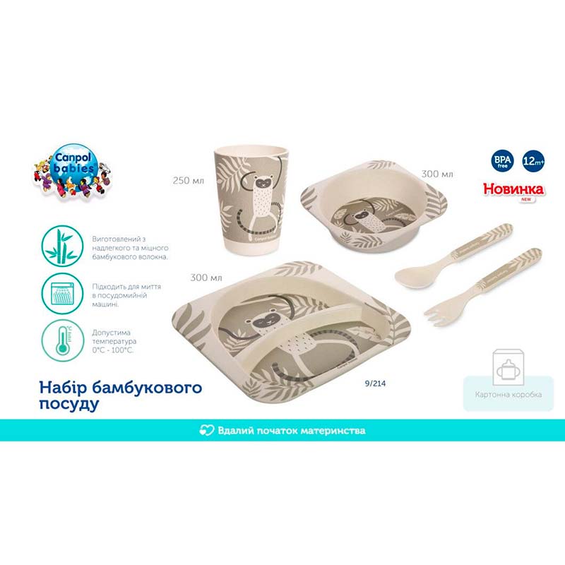 Ігровий набір із посудом Canpol babies LEMUR бамбуковий 9/214