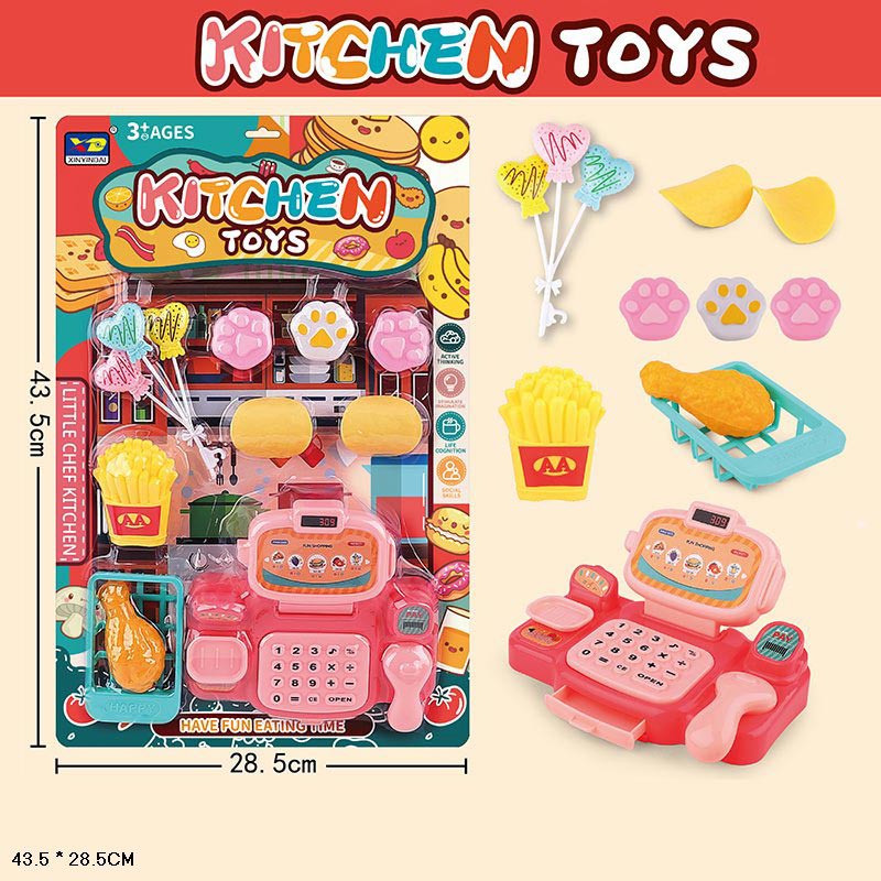 Різноманітні іграшкові продукти, елементи для каси та аксесуари, які разом створюють повноцінний ігровий простір. Всі предмети оформлені яскраво й правдоподібно, щоб підтримувати інтерес дитини під час тривалих ігор.