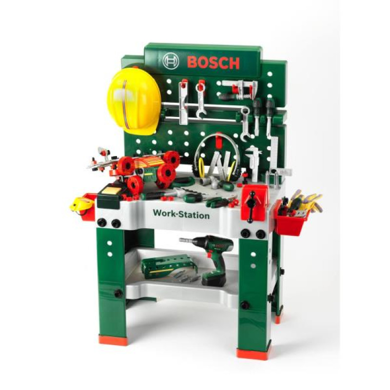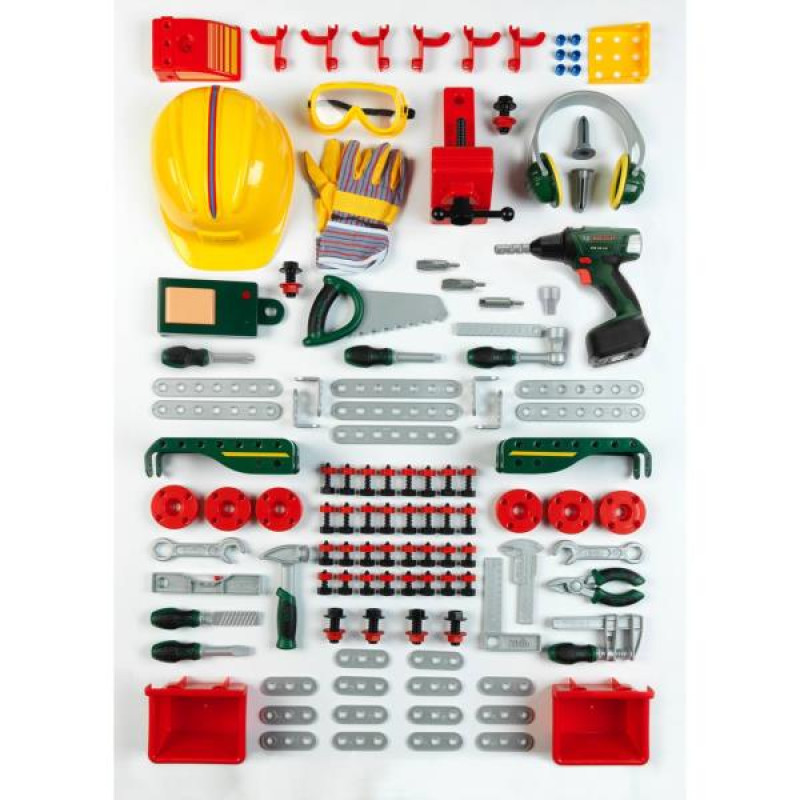 Ця майстерня оснащена всім необхідним приладдям для будівництва, шліфування, свердління та DIY - все, про що можуть мріяти маленькі умільці. У набір входить шолом, захисні окуляри, навушники, рукавички, інструменти та багато іншого необхідного приладдя.Ваші діти можуть відчути себе справжніми професіоналами, граючи інструментами Bosch. Закручуючи шурупи та майструючи, діти тренують свою дрібну моторику та розвивають просторове мислення та творчі здібності.У хлопців буде можливість ознайомитися з різними інструментами та їх функціями в абсолютно безпечних умовах. Іграшки виготовлені з пластику найвищої якості, що гарантує їх довговічність.Набір містить: верстак, стіни майстерні та полиці, викрутка зі звуковим і світловим ефектом, конструктор, пилку, ключі, викрутки, плоскогубці, молоток, напилок, кутник, супорт, гвинти, гайки, дошки та інше.Для безпечної гри є захисний одяг: окуляри, шолом, рукавички, навушники.Батареї не входять до комплекту.Для дітей від 3-х років.