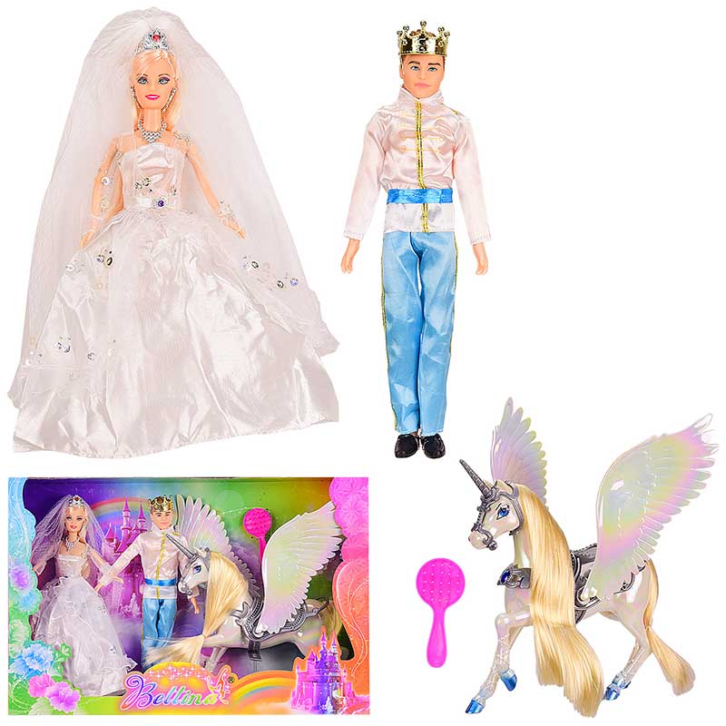 Ігровий набір ляльок у весільному вбранні з єдинорогом і гребінцем 68250