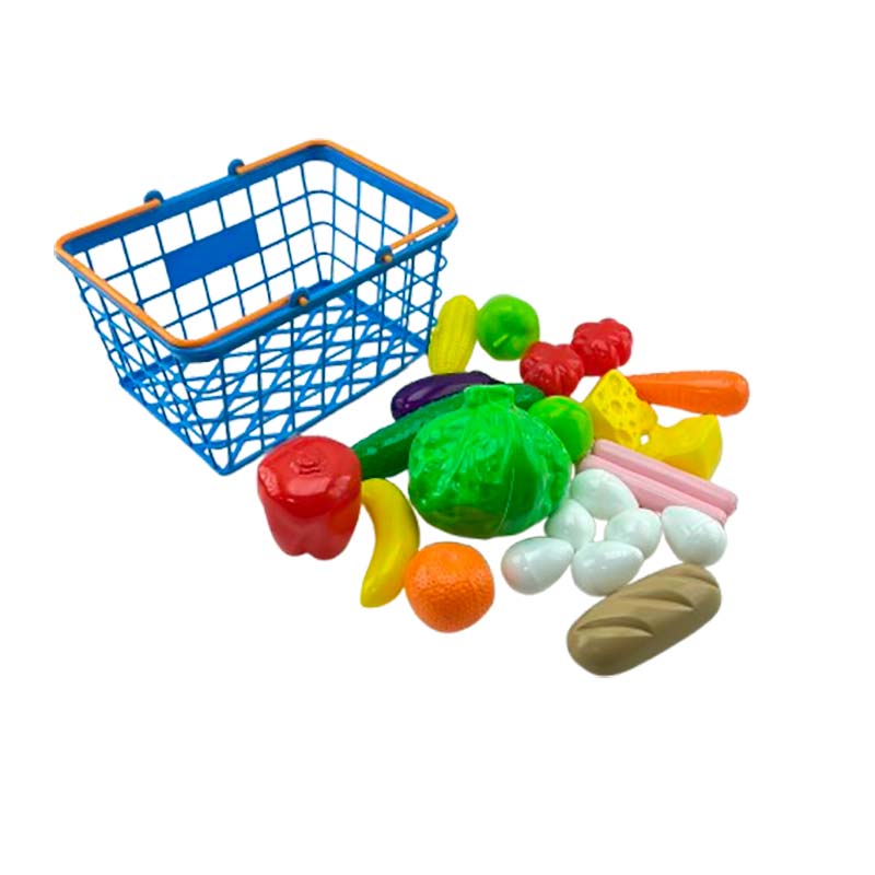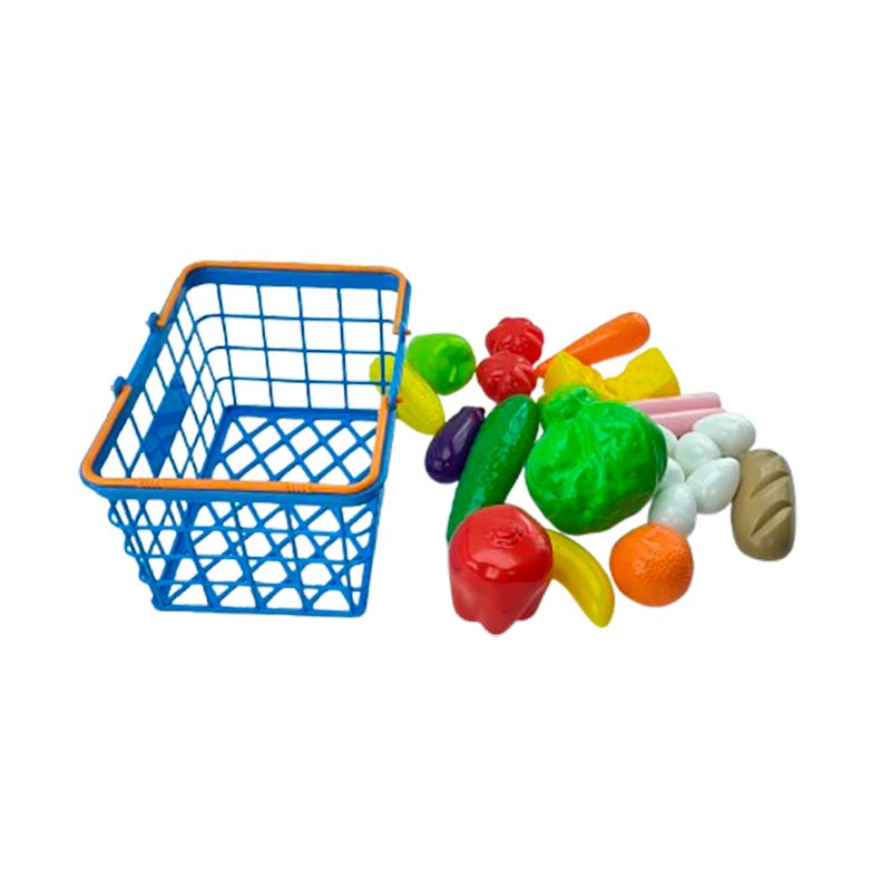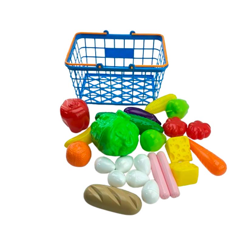 До набору входить 27 предметів — барвисті продукти, зручні для дитячих ручок. Кошик додає грі реалістичності та сприяє розвитку уяви, моторики й соціальних навичок дитини.