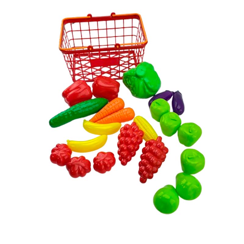 У наборі — 25 елементів: перець, морква, кукурудза, огірок, баклажани, банан та інші барвисті овочі й фрукти. Іграшки приємні на дотик і зручні для маленьких ручок, сприяють розвитку моторики та уяви.