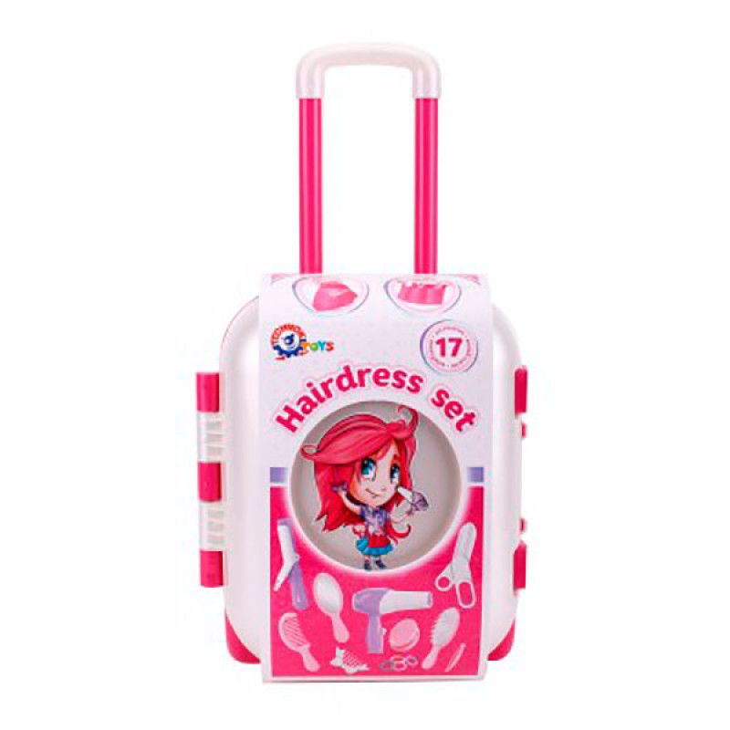 Такий набір принесе море радості маленьким модницям та зробить ігри дуже реалістичними. Розміри іграшкового приладдя оптимально розраховані для дівчаток. Також їх зручно взяти з собою на прогулянку чи у дитячий садок. Зберігати та переносити перукарські інструменти та аксесуари можна у маневровій валізі з регульованою ручкою.