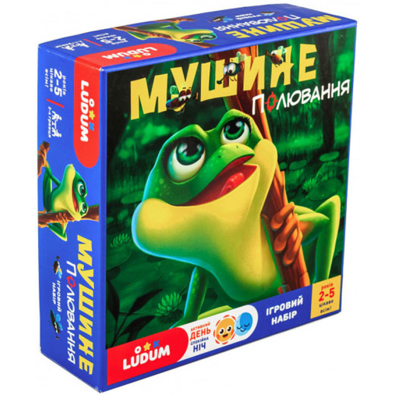 Комплектація: ігрові картки-листочки із зображенням мух - 36 шт.; "стрибаючі" жаби (4 шт.); листівка з оповіданням; інструкція + посилання на аудіоказки.