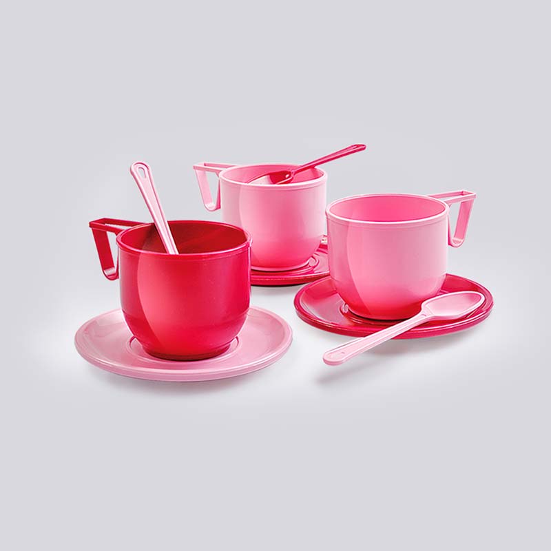 Набір посуду складається з 18 предметів. Упакований у сітку.