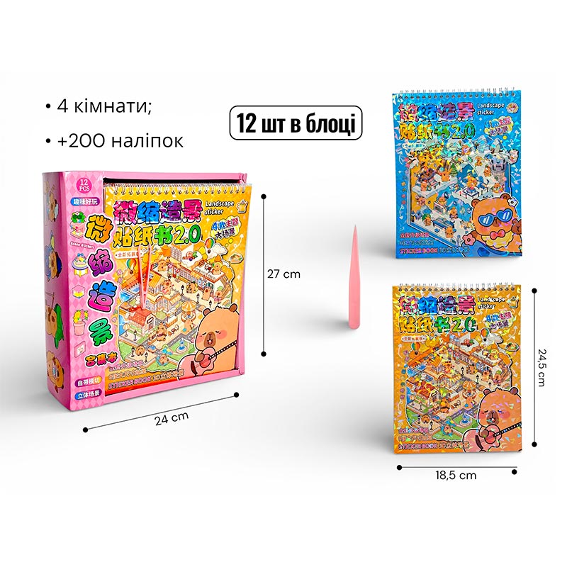 | Комплектація | блокнот (4 стор.-заготовки, 4 стор.-наліпки), пінц |
