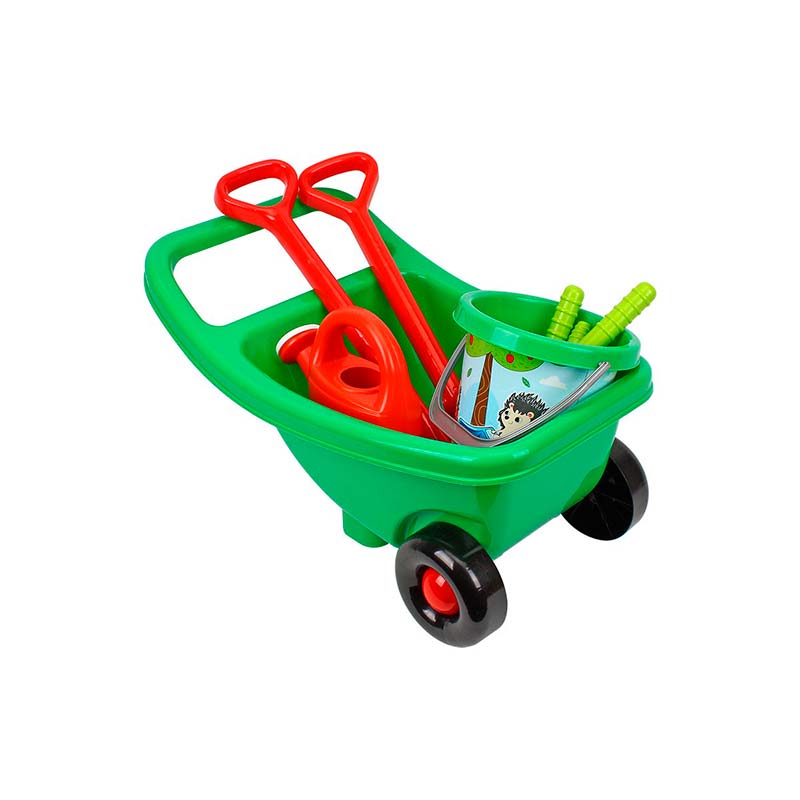 Комплектація: У набір входять лопатка, граблі, лійка та інші садові інструменти, виготовлені з безпечного пластику.