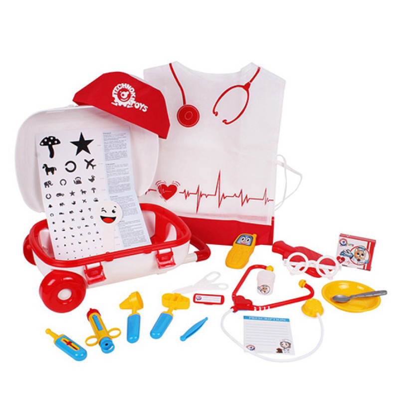 У цьому наборі стильна медична валізка, яка вже встигла викликати справжній захват серед дітей і дорослих, доповнена лікарським вбранням: фартухом та шапкою.
