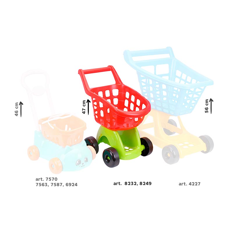 Місткий та зручний візочок стане чудовим доповненням до сюжетних ігор у магазин чи доставку їжі. У нього можна скласти багато різноманітних іграшок, наповнити кошик свіжими овочами, соковитими фруктами та запашною випічкою для смачного сімейного обіду. Вдома чи на прогулянці він зручно слугуватиме для перевезення улюблених м’яких іграшок та ляльок, а дитяча фантазія підкаже ще безліч цікавих сценаріїв гри.