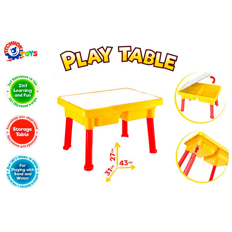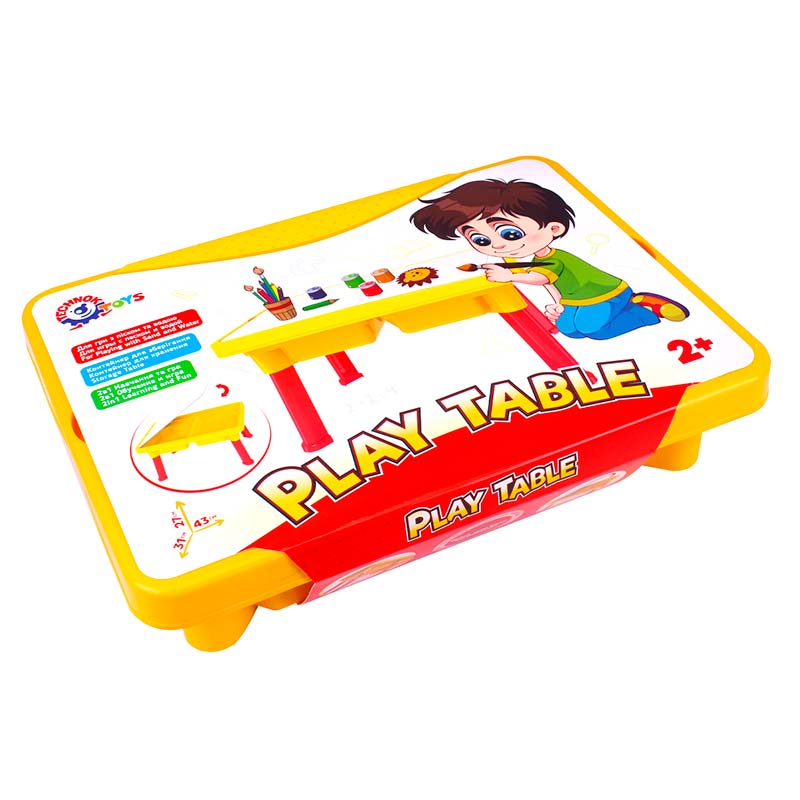 Столик надає різноманітні варіанти ігор, чи то малювання олівцями, фломастерами або фарбами, чи то творчість із пластиліном, кінетичним піском, а також зручне місце для зберігання різних матеріалів і канцелярського приладдя.