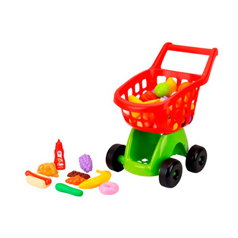 Місткий візок, повний соковитих овочів, солодких фруктів та запашної випічки для смачного сімейного обіду. В нижній частині візка є додаткова поличка для сумки чи шопера. Вдома та на прогулянці в візку особливо зручно перевозити улюблені м'які іграшки та ляльки - дітлахи самостійно придумають ще безліч цікавих ігор з красивим візком.