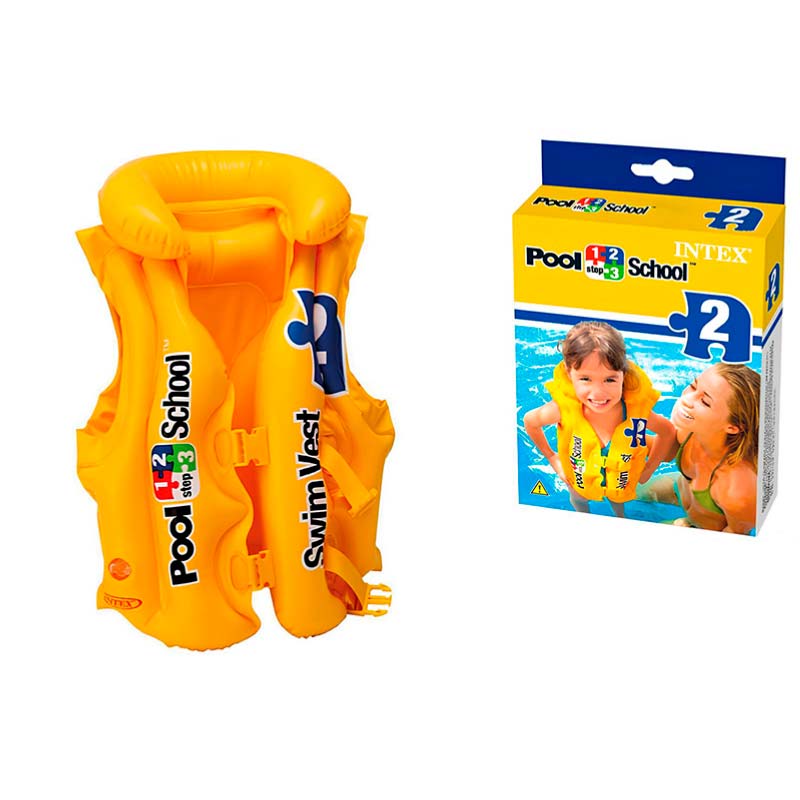 INTEX Жилет жовтий вініловий 3-6років. Жилет має 2 окремі повітряні камери, що забезпечує більшу безпеку, і 2 зручні засувки. упакований жилет у коробку.