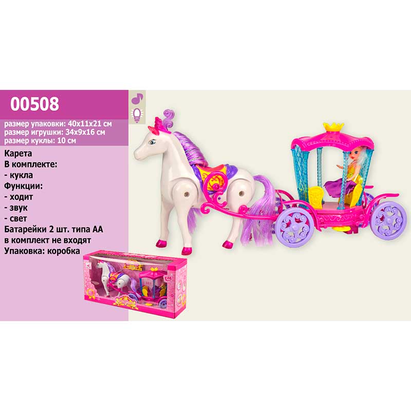 Карета з конячкою, світло, музика, ходить, лялечкою