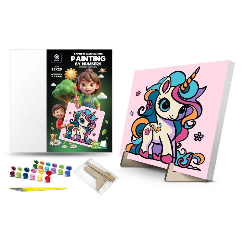 Каритна за номерами qbee "Грайлива єдиноріжка" з деревяною підстав 25х25 с QB900-001/QB901-001