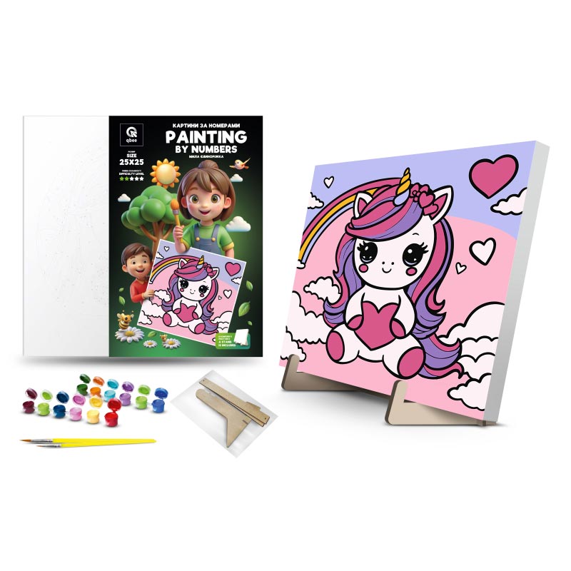 Каритна за номерами qbee "Мила єдиноріжка" з деревяною підставкою 25х25 см QB900-052