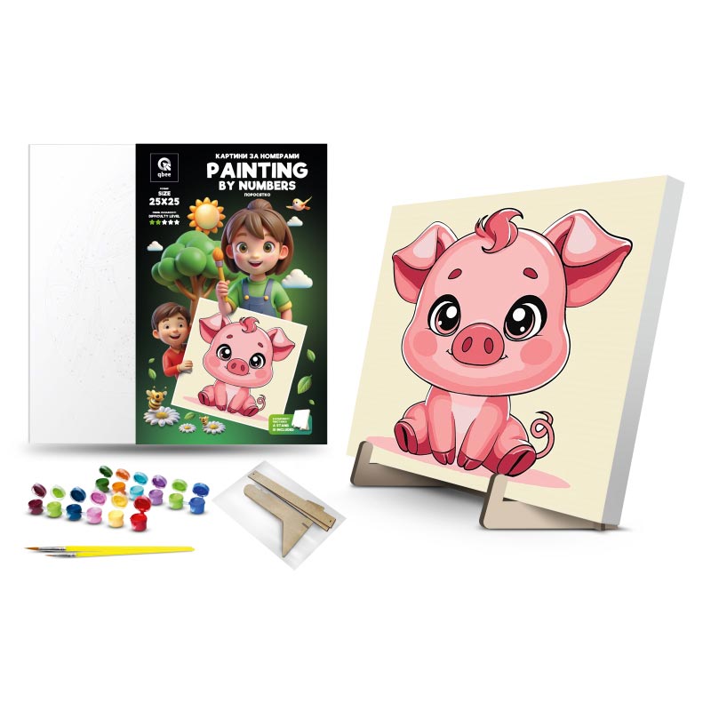 Каритна за номерами qbee "Поросятко" з дерев'яною підставкою 25х25 см QB900-014