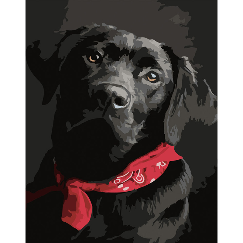 Картина по номерах Лабрадор з червоною повязкою Strateg 40х50 см DY288