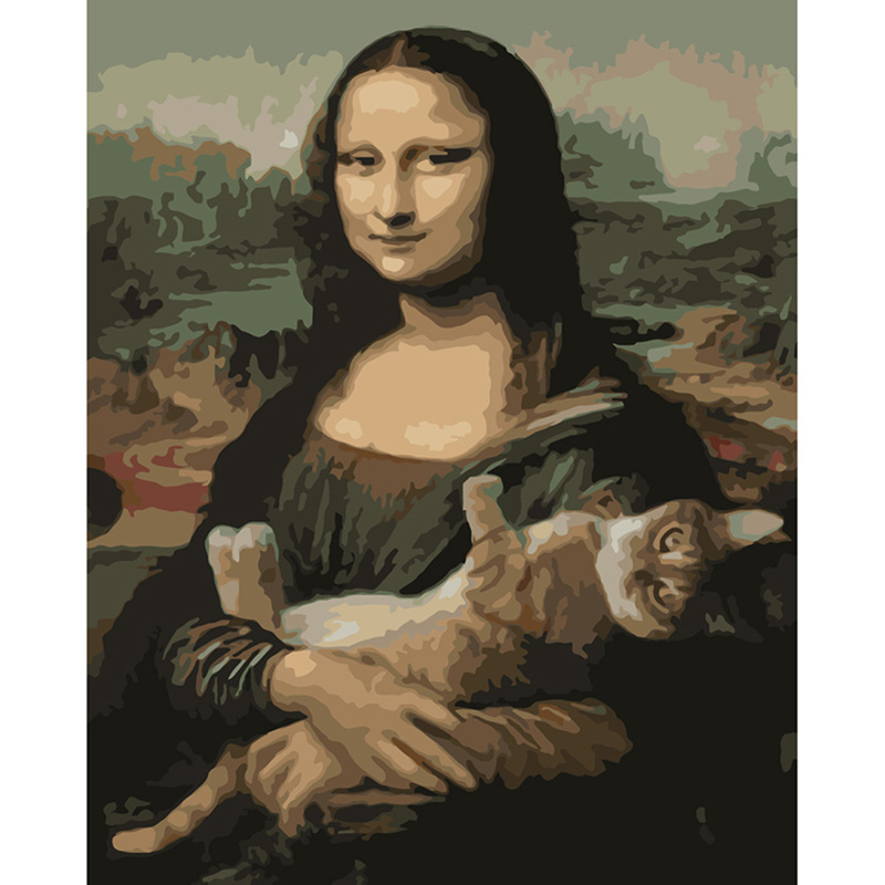 Картина по номерах Мона Ліза та кіт Strateg 30х40 см