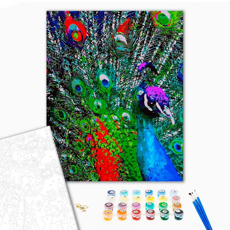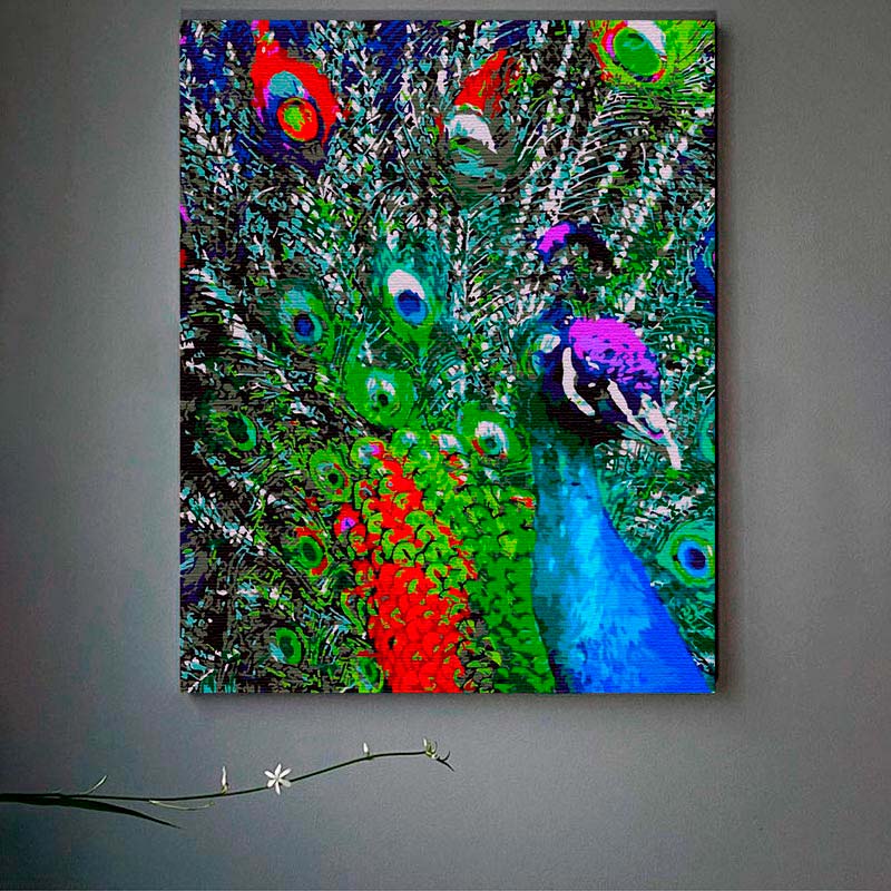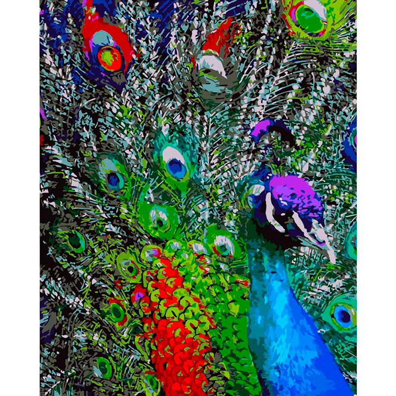 Картина по номерах Різнобарвне піря павлина Strateg 40х50 см GS171