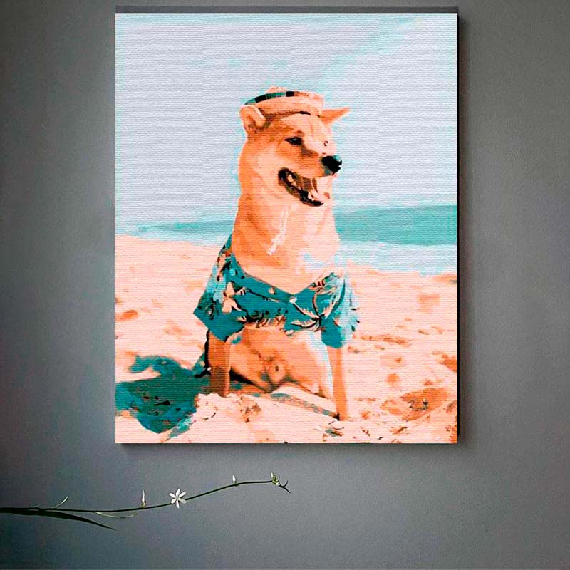 Картина по номерах Шіба-іну на пляжі Strateg 40х50 см DY110