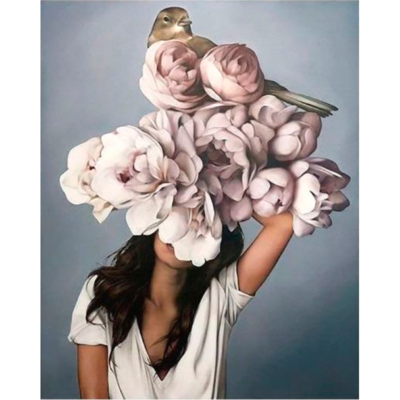 Картина за номерами "Дівчина з півоніями і птахом" тм Лавка Чудес 40 x 50 с LC10072