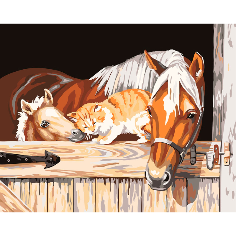 Картина за номерами "Коні та кіт" тм Лавка Чудес 40 x 50 см у коробці LC20143