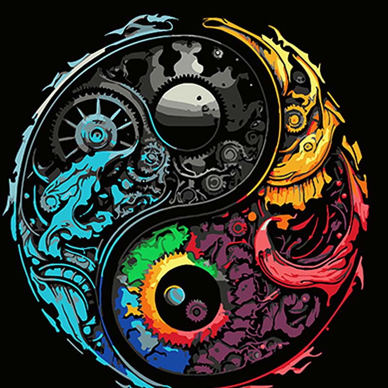 Картина за номерами Барвистий символ Інь Ян Strateg на чорному фоні 40х40 с AV4040-76