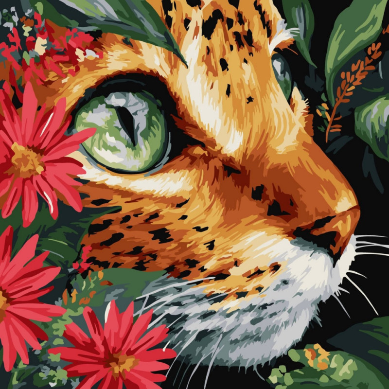 - Натуральне полотно на підрамнику з галерейною натяжкою. На картині нанесена схема контурів зображення з нумерацією. Картина має кольоровий фон, який не потрібно зафарбовувати.
