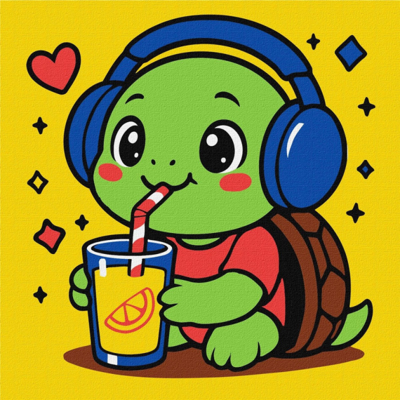 Картина за номерами "Черепашка пʼє лимонад" ©art_selena_ua KHO1289 25х25 см