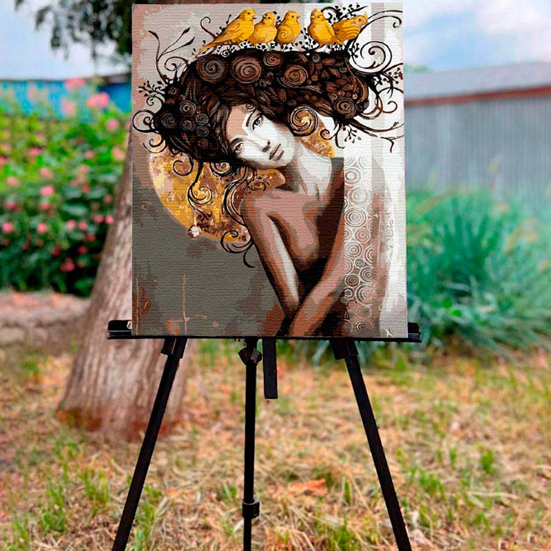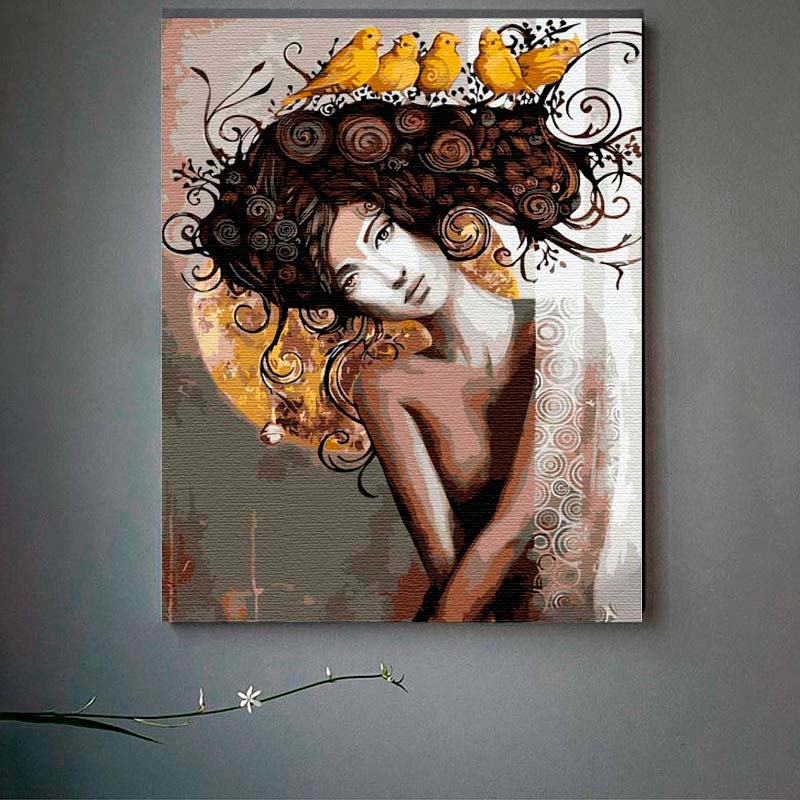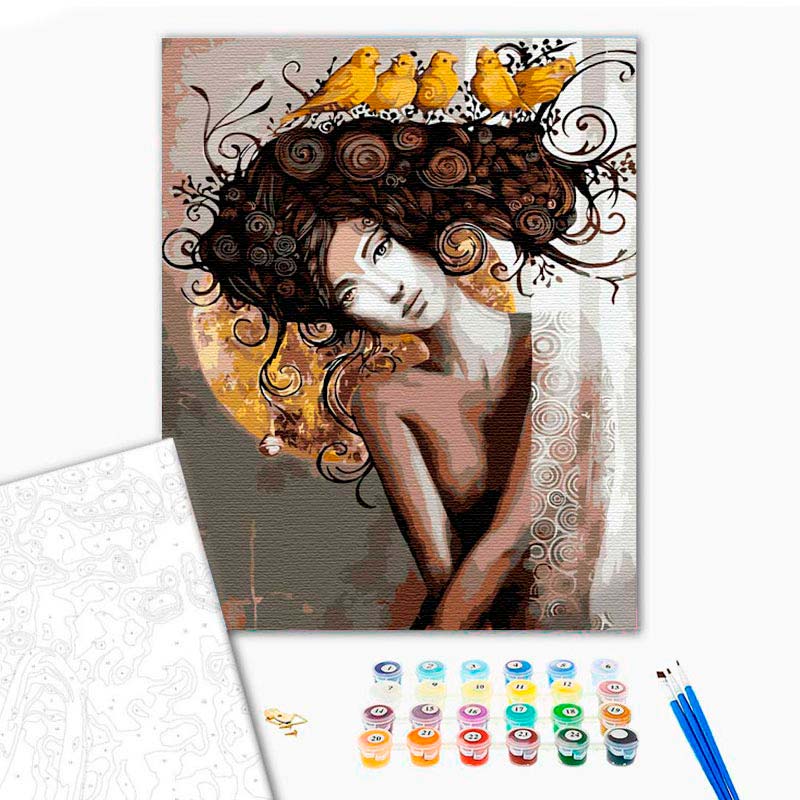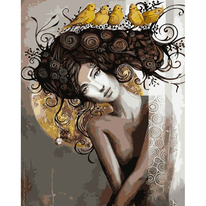 Картина за номерами Дівчина з птахами Strateg 40х50 см GS1434