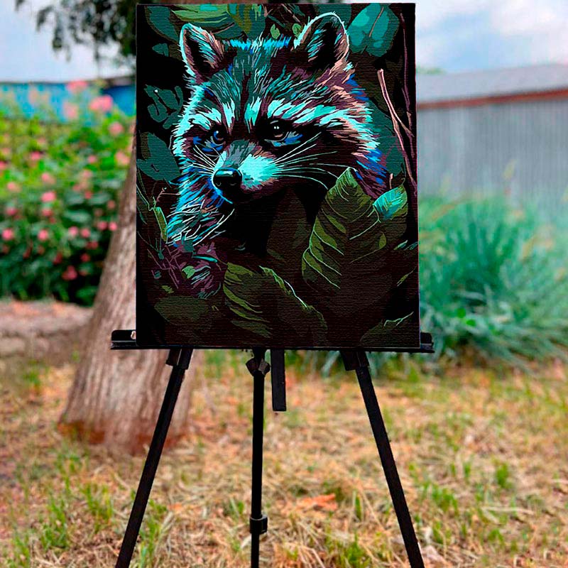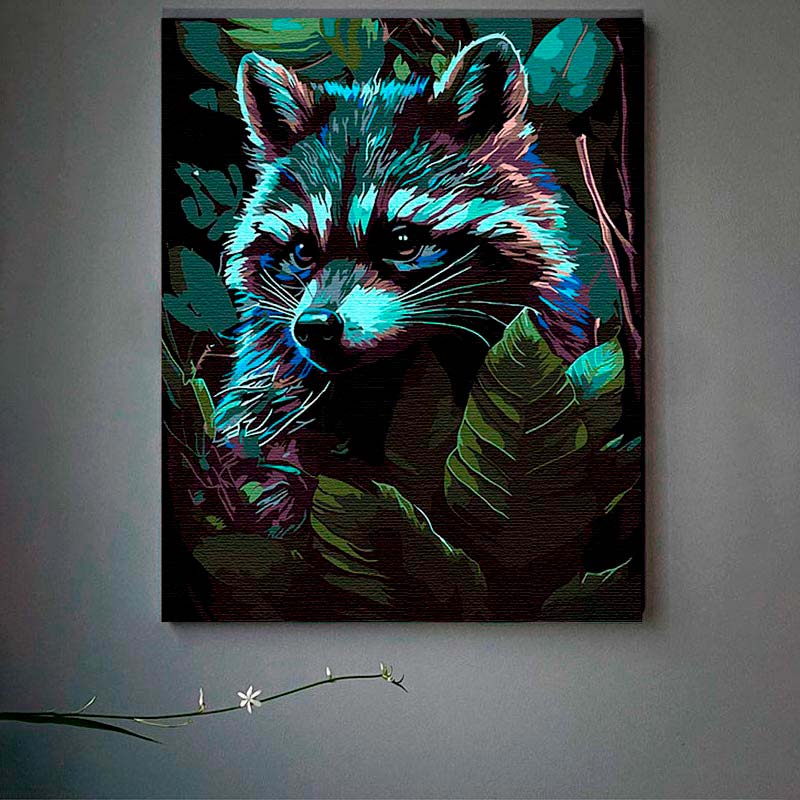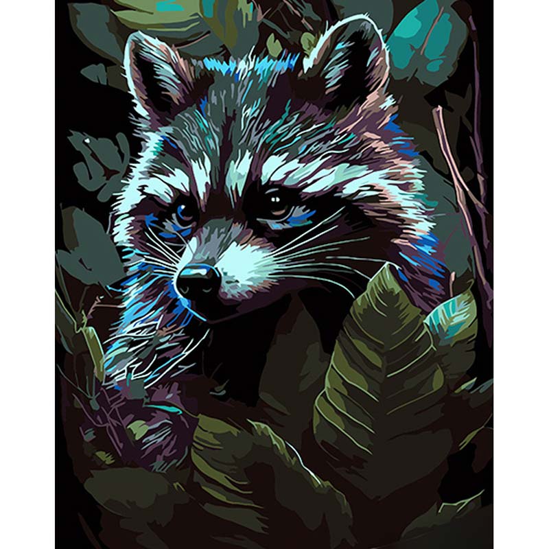 Картина за номерами Єнот серед лісу Strateg на чорному фоні 40х50 см AH1026