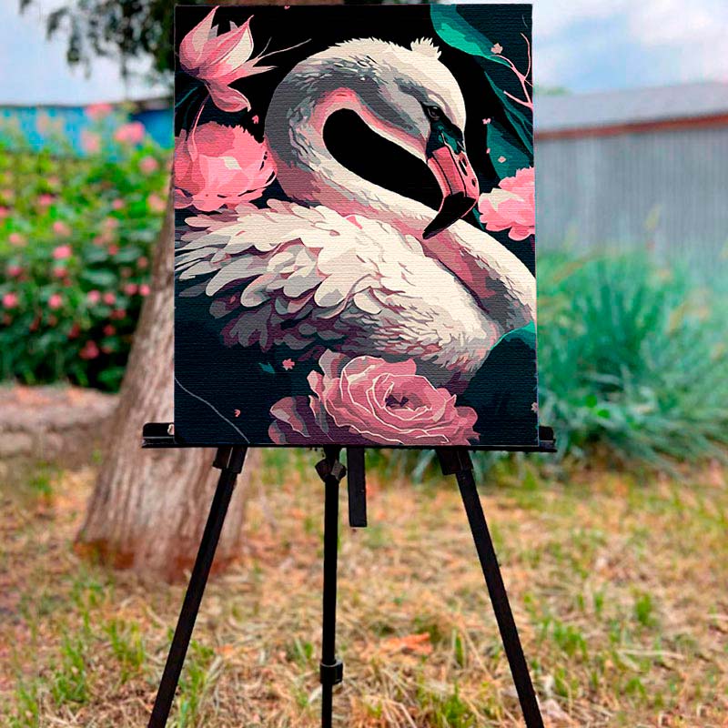 Картина за номерами Фламінго у квітах Strateg на чорному фоні 40х50 см AH1043