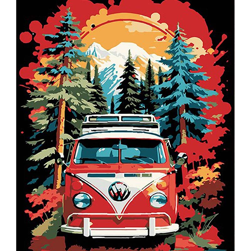 Картина за номерами Фольксваген бус в лісовій гущавині Strateg на чорному ф FH-7