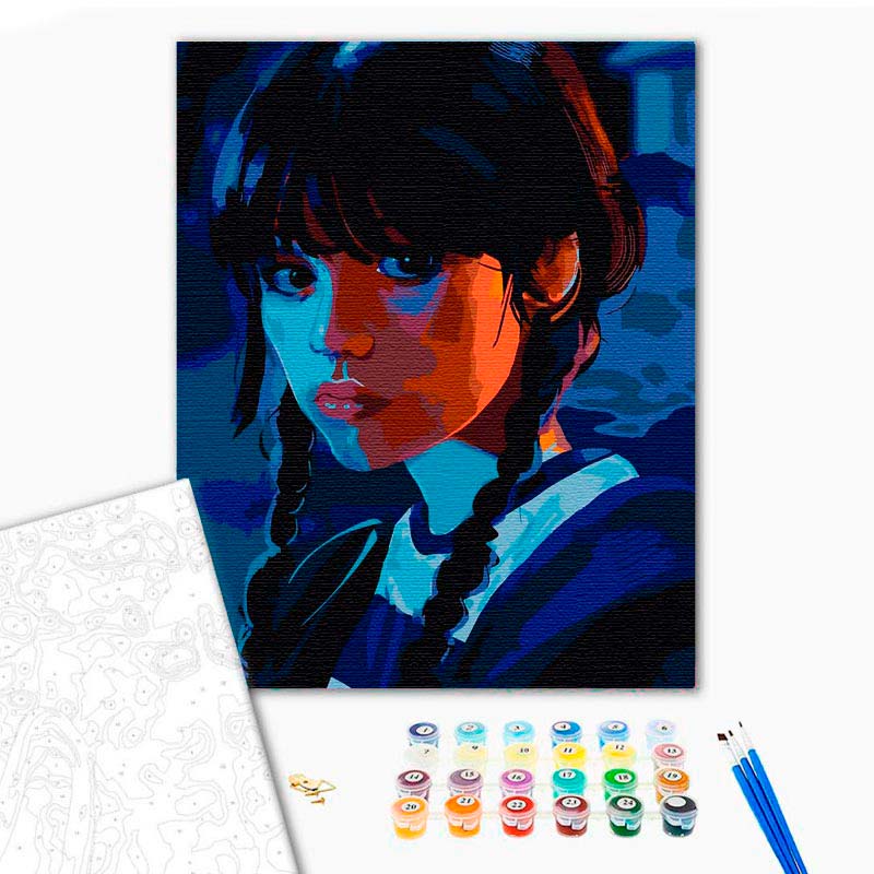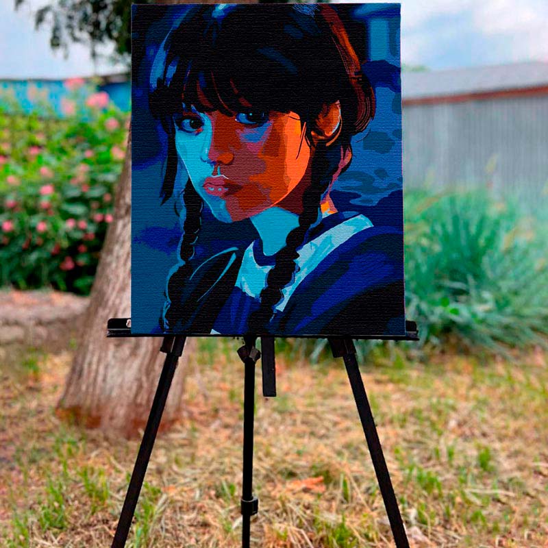 Опис товару: Прикрасьте свій дім цією захоплюючою картиною за номерами, натхненною головною героїнею серіалу Венздей. Ця картина не тільки дивовижно красива, а й являє собою унікальне хобі, яке дасть вам змогу розфарбувати її самостійно, створюючи витвір мистецтва, який прикрасить вашу стіну.