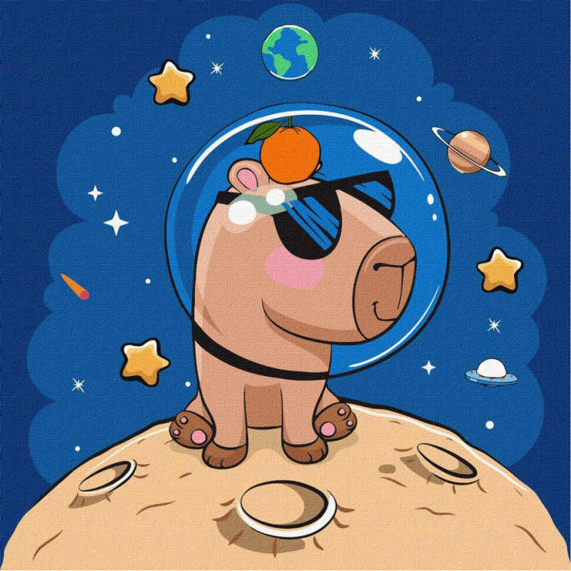 Картина за номерами - Капібара на місяці для вашої творчості. Зроблено в Україні.