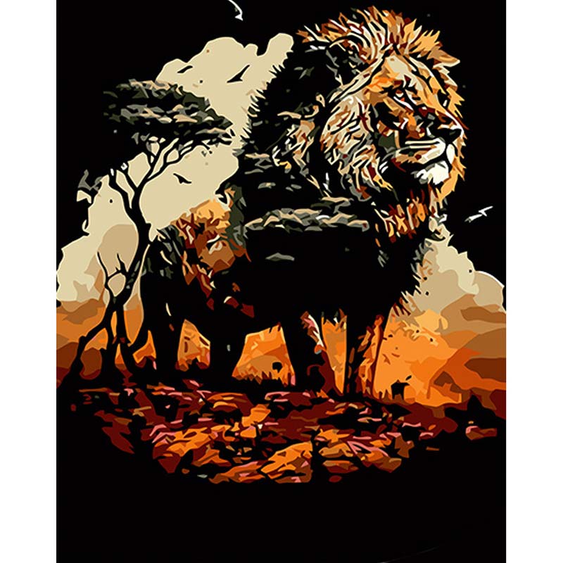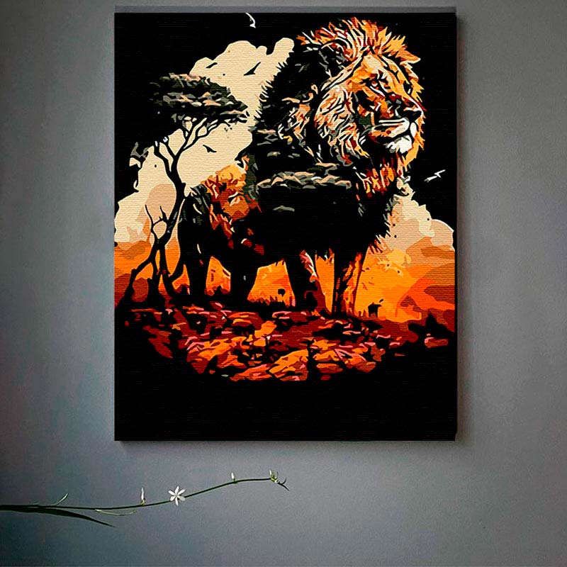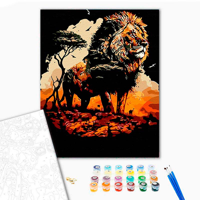 Картина за номерами Король лев Strateg на чорному фоні 40х50 см AH1022