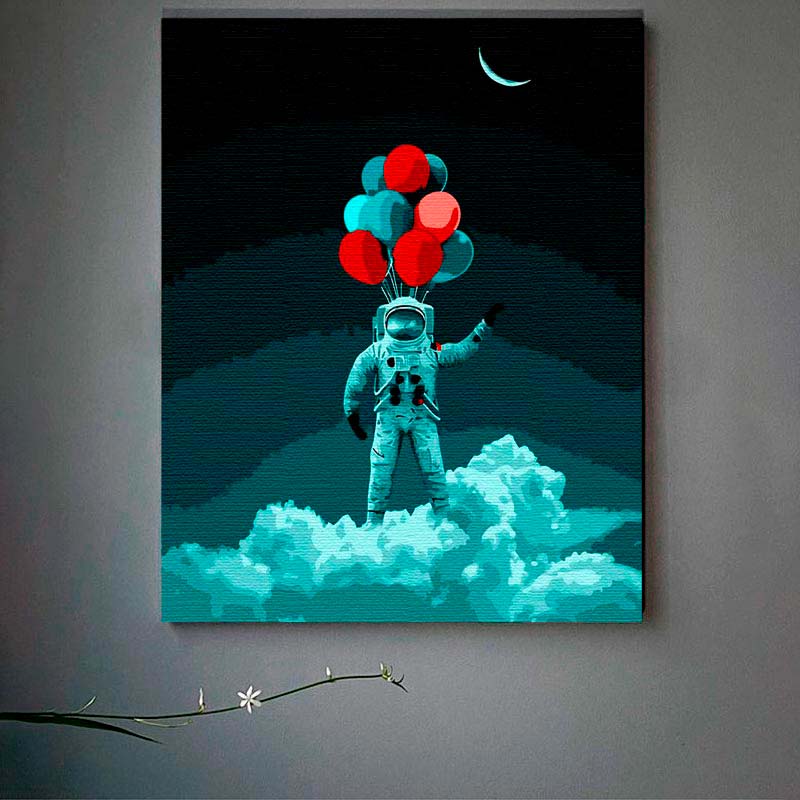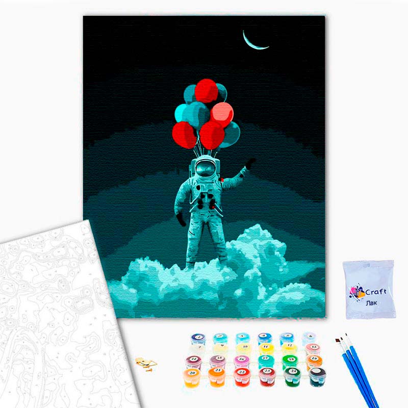 Картина за номерами Космонавт із кульками Strateg 40х50 см DY171
