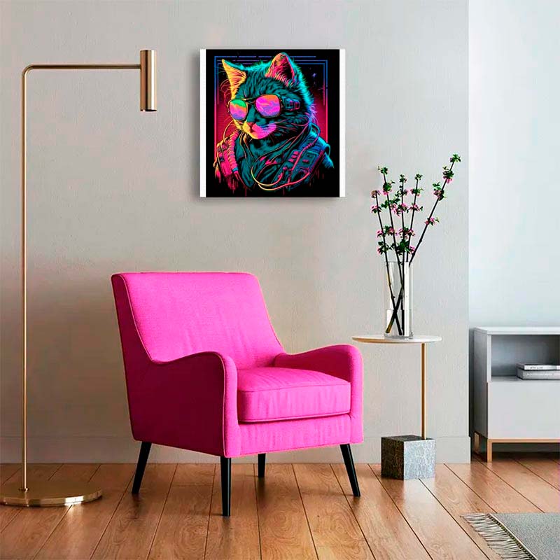 Картина за номерами Крутий кіт у сонцезахисних окулярах Strateg на чорному AV4040-7