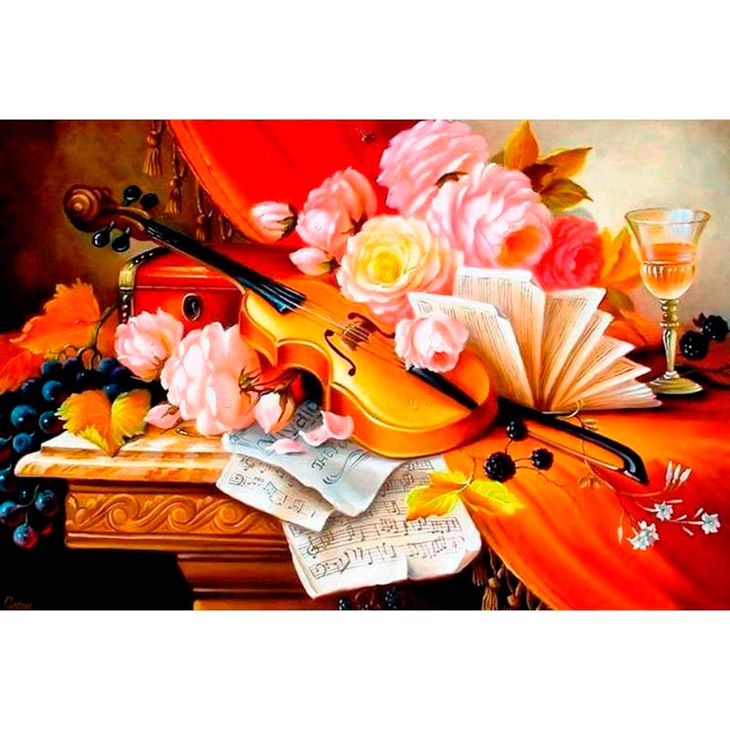 Картина за номерами "Квіти та скрипка" тм Крамниця Чудес 40 x 50 см у короб LC40078