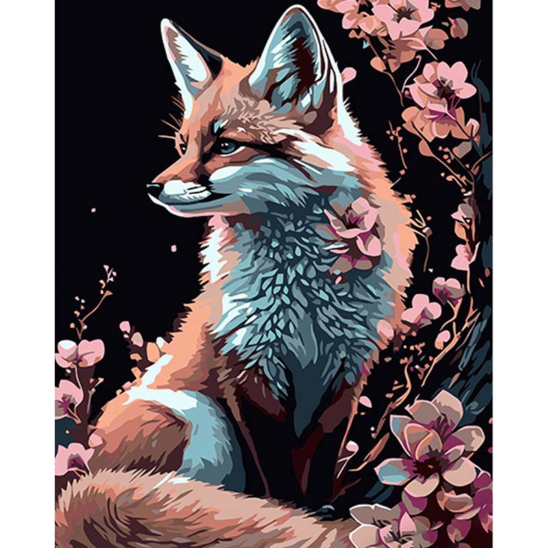 Картина за номерами Лисиця в ніжних квітках Strateg на чорному фоні 40х50 с AH1006