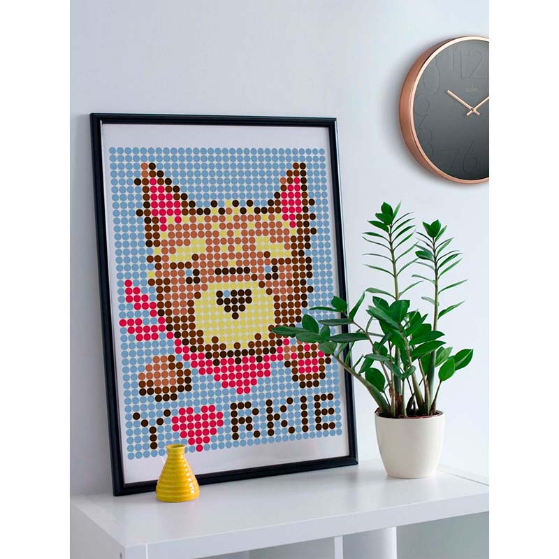 Умняшка пропонує захопливий набір для творчості з милим образом йоркширського тер'єра. Це простий та зрозумілий формат, де замість фарб використовуються наклейки — і завдяки цьому створення картини стає доступним та приємним процесом.