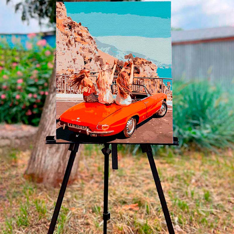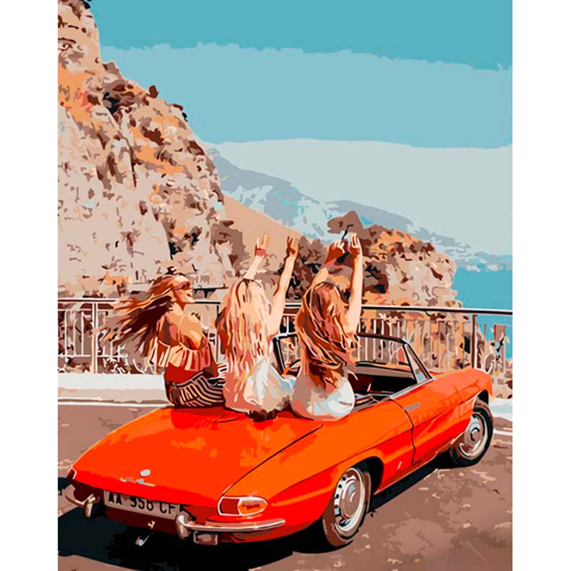 Картина за номерами Подружки на червоному авто Strateg 40х50 см GS897