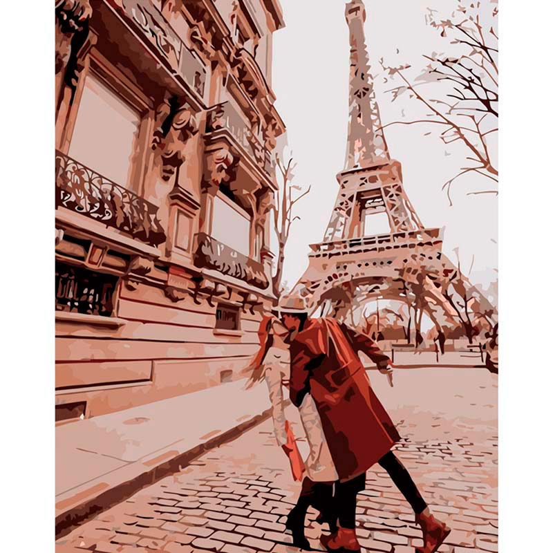 Картина за номерами Поцілунок піл Ейфелевою Баштою Strateg 40х50 см GS141