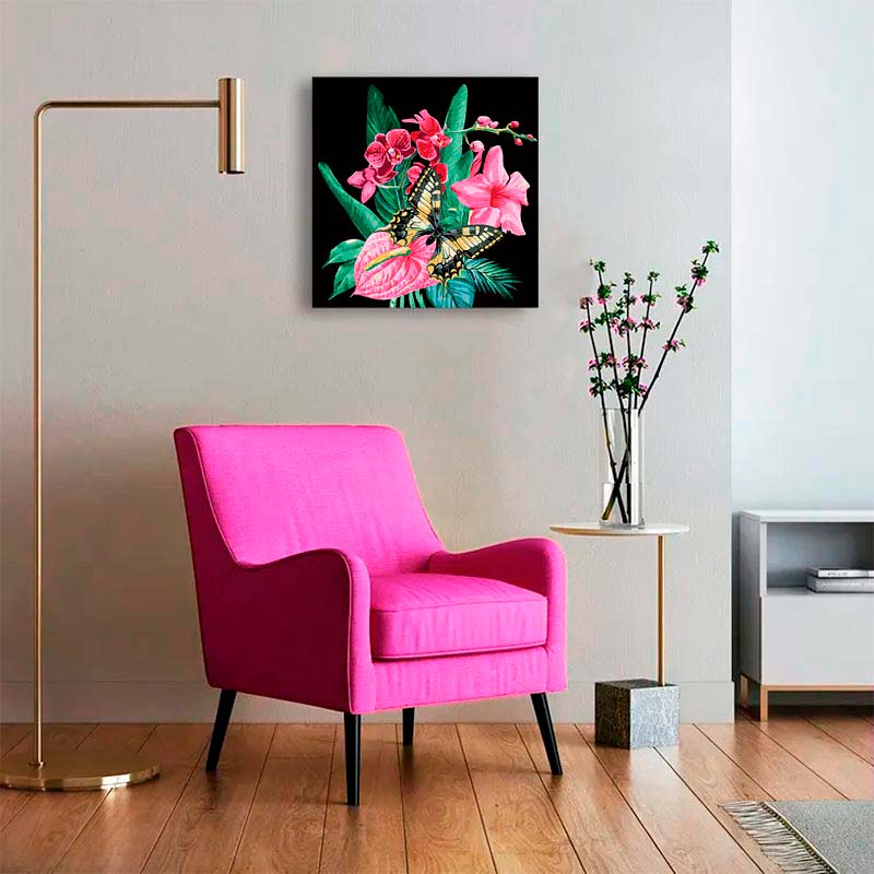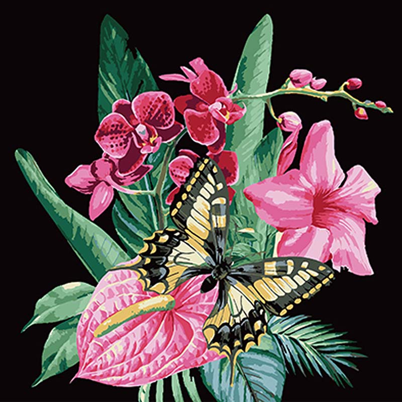 Картина за номерами Розкіш квітів Strateg на чорному фоні 40х40 см AV4040-32