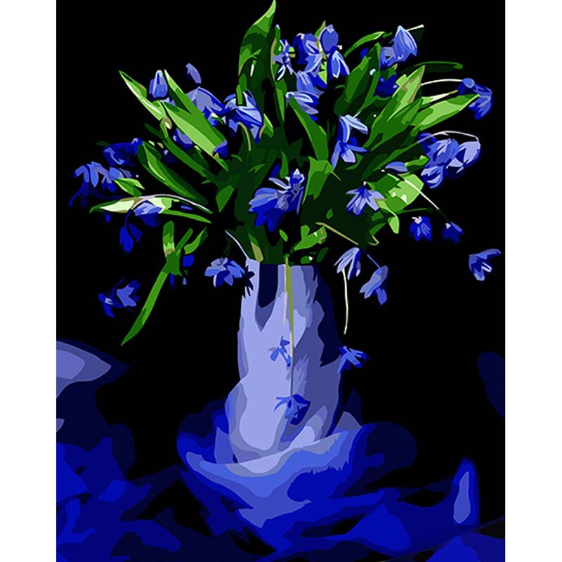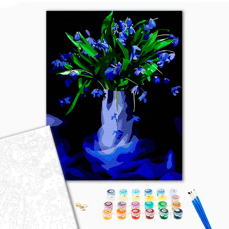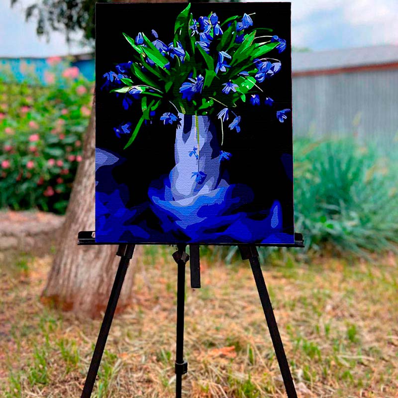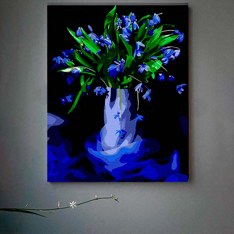 Картина за номерами Сині проліски Strateg на чорному фоні 40х50 см AH1005